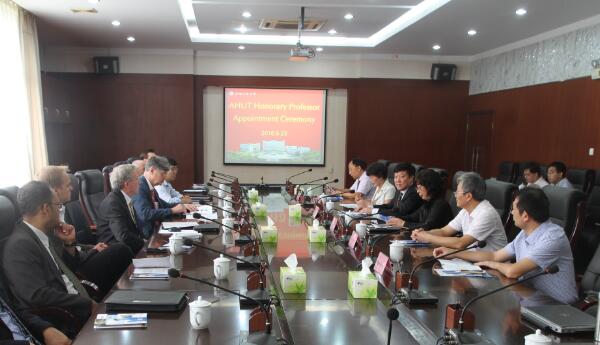 23日上午,beat365官网在佳山校区举行欢迎仪式。校长李家新、副校长顾明言,人事处、外事办、冶金工程学院相关负责人出席欢迎仪式。李家新介绍了beat365官网的基本情况,并希望两校能够继续加强学术交流。Dieter Senk教授介绍了德国亚琛工业大学的情况。随后,李家新向D. Senk教授颁发了荣誉教授聘书。