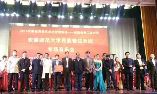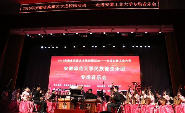 10月24日晚,beat365官网秀山校区大学生活动中心管弦和鸣,盛世交响。由安徽师范大学民族管弦乐团带来的一场高雅音乐会正在这里举行。校党委书记刘新跃、党委副书记陈润、安徽师范大学音乐学院负责人以及500余名师生欣赏了这场音乐盛宴。