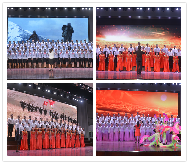 合唱比赛在数理学院合唱团《我和我的祖国》的优美旋律中拉开帷幕,《我的祖国》、《祖国不会忘记》、《在太行山上》、《中国,中国,鲜红的太阳永不落》、《同一首歌》、《过雪山草地》、《团结就是力量》、《七律·长征》、《今天是你的生日》、《我们走在大路山》、《没有共产党就没有新中国》、《为了谁》、《我们的田野》、《游击队之歌》、《走向复兴》等一首首耳熟能详的爱国歌曲铿锵有力,荡气回肠。演职人员用时而缓慢悠长,时而自豪愉悦的歌声,将现场听众带回激情澎湃、斗志昂扬的革命岁月,重温了红军不怕艰苦、顽强抗敌的长征精神;用激昂动听的歌声、饱含深情的吟诵,抒发了对中国共产党的无限忠诚和热爱,歌颂了红军长征所表现出的必胜信念和一往直前的英雄气概。雄壮嘹亮的歌声响彻演出现场,华章迭起,精彩不断,为现场观众献上了一场回味无穷的听觉盛宴,赢得阵阵热烈掌声。合唱比赛在艺设学院合唱团《迎风飘扬的旗》的歌声中落下帷幕。