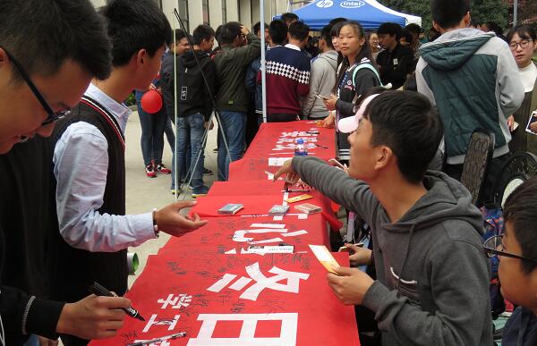 陈润与现场同学交流,询问同学们参与活动的感受,并在活动主题横幅上签名留念。他对此次活动给予了肯定,并要求学工部门进一步扩大心理健康教育覆盖面,创新载体和形式,提高育人实效,让广大同学在活动中有乐趣、有体验、有收获、有成长。
