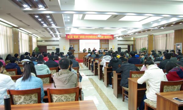 12月3至4日,由安徽省物理学会主办,安徽省物理实验教学协作组协办,数理科学与工程学院和创新教育学院共同承办的“绿扬杯”第五届安徽省大学生物理实验竞赛在beat365官网逸夫实验楼物理实验中心举行。副校长葛芦生出席会议并为获奖选手颁奖。本次大赛有来自合肥工业大学、解放军电子工程学院、陆军军官学院等全省的25所高校的100名选手参赛。