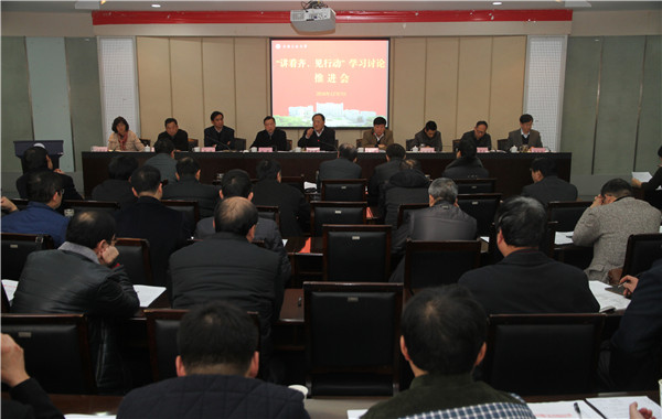 12月7日下午,校党委在佳山校区学术会议中心召开“讲看齐、见行动”学习讨论推进会,校党委书记刘新跃出席会议并讲话,校长李家新主持会议。校党政领导、各基层党委(党总支、直属党支部)书记、各学院(部)院长(主任)、机关各部门及校直各单位主要负责人参加了会议。