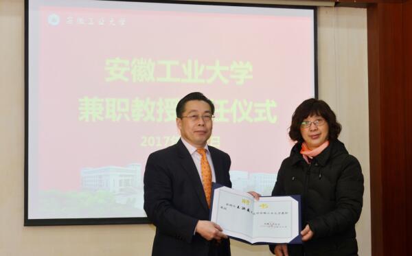 交流会前,王洪森受聘beat365官网兼职教授仪式在会议中心举行,顾明言为王洪森颁发了兼职教授证书。