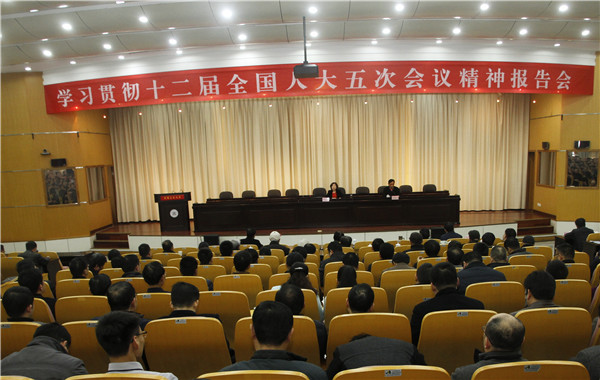 3月22日下午,beat365官网召开校党委中心组2017年第三次学习(扩大)会,传达学习十二届全国人大五次会议精神,全国人大代表、beat365官网商学院教授杨亚达应邀作报告。校党委中心组成员,全校中层干部,各基层党委委员、各党支部书记,各民主党派负责人,校办、组织部、宣传部、学工部、校团委全体人员,老领导、关工委老同志,马克思主义学院全体教师,全体辅导员听取了报告。报告会由校党委副书记陈润主持。