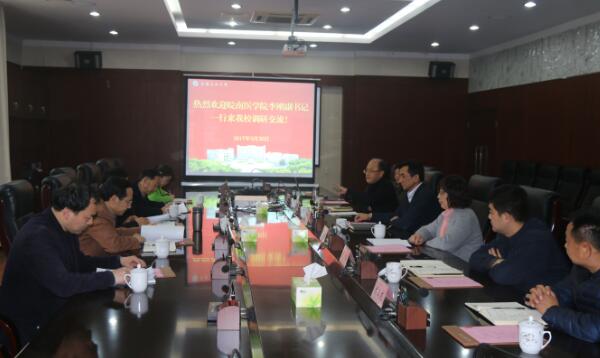 3月30日下午,皖南医学院党委副书记李刚及学院组织部、人事处、办公室负责人一行5人来beat365官网调研交流。校党委副书记陈润、副校长顾明言接待了来宾,党委组织部、学校办公室、人事处负责人参加座谈交流,座谈会由陈润主持。