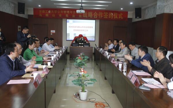 公法学院与马鞍山市司法局共同签署了战略合作协议书,举行了聘任马鞍山市司法局局长侯沪东为兼职教授和教学实践基地揭牌仪式。揭牌仪式后,司法局各部门领导与公共管理与法学院党政领导及各系主任就人才培养模式、局院合作路径、未来工作计划等方面进行了交流讨论。(文/王菁 龙长安 图/王旭东 审核:张洪根 邹珏)