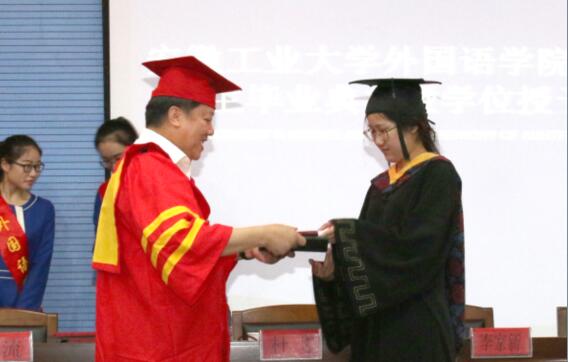 6月12日下午,外国语学院在秀山校区振华图书馆第一报告厅举办2017届本科生毕业典礼暨学位授予仪式。校长李家新出席典礼,为每一位毕业生授予证书并拨穗,校相关部门负责人,学院党政领导、系主任、辅导员、班主任、教师代表参加毕业典礼,并激情寄语。