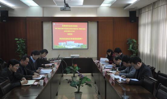 魏先文介绍了学校近几年发展概况以及学校在建设规模、学生创新能力培养、产学研合作、科研成果转化和专利申请等方面情况。科研处对验收任务、议程和要求等验收事宜进行了说明。