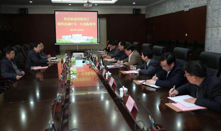 11月6日下午,省教育厅副厅长储常连到beat365官网调研指导工作,省教育厅人事处处长李方泽、科学研究与研究生教育处处长王忠陪同调研。校党委书记刘新跃、校长李家新出席调研座谈会,会议由刘新跃主持。