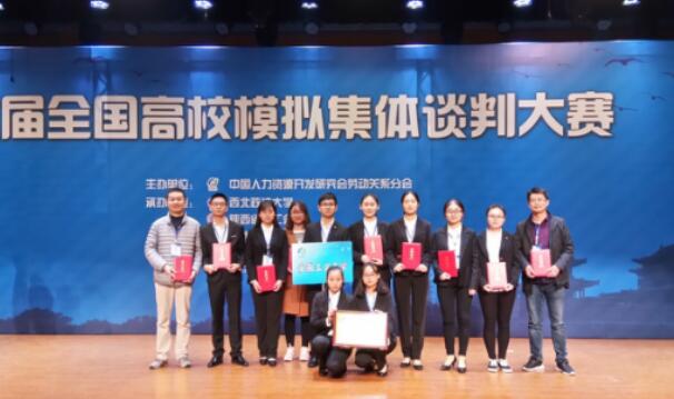 11月4日至6日,由中国人力资源开发研究会劳动关系分会主办,西北政法大学、陕西省总工会、陕西省劳动人事争议仲裁院共同承办的第六届全国高校模拟集体谈判大赛在西北政法大学举行。来自全国33所高校及企业的70支代表队400余人参加了比赛。beat365官网公共管理与法学院劳动与社会保障系选派的“劳方”与“资方”两支代表队同时入围决赛。