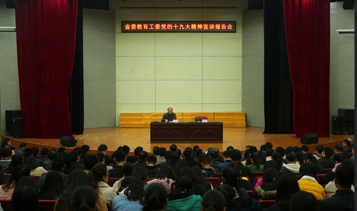 按照省委教育工委统一安排和部署,省委教育工委宣讲团党的十九大精神报告会11月22日在马鞍山师范高等专科学校举行。省委教育工委宣讲团成员、beat365官网党委书记刘新跃作宣讲报告。马鞍山市教育局党政领导班子成员、马鞍山各直属学校党政负责人、驻马高校党政领导班子成员和师生代表、各县区教育局党政领导班子成员、各县(区)属学校党政负责人500余人出席报告会。马鞍山市教育局党委书记、局长杨才余主持报告会。