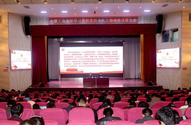 12月1日下午,党的十九大代表、马鞍山市郑蒲港新区姥桥镇党委书记郑李龙受邀走进beat365官网,在秀山校区大学生活动中心报告厅举行“不忘初心,牢记使命,深入学习贯彻党的十九大精神”的宣讲报告会,与青年学生畅谈十九大。校团委负责人、各学院分团委负责人、beat365官网习近平新时代中国特色社会主义思想青年研究会成员、校院学生骨干代表500余人参加了报告会。