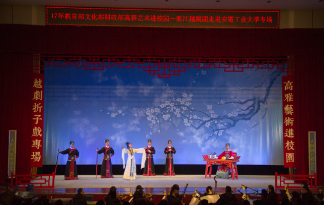 演出在越剧表演《让世界看我特色华夏树新碑》中开场,展现了为十九大精神所鼓舞的华夏儿女饱满的精神状态和砥砺奋进的昂扬斗志。由浙江越剧团的艺术家们演绎的经典剧目,给全校师生带来了一场难忘的视听盛宴。在《窦娥冤·斩娥》中,演员们凭借精湛的演技、无可比拟的唱腔,将窦娥悲怆之情表现得淋漓尽致,令人潸然泪下。《祥林嫂·洞房》中,演员们将祥林嫂与贺老六的情感变化表现得层次分明,展现了旧社会女性的悲剧命运。越剧《天女散花》载歌载舞,五彩的绸带配上婀娜的舞姿展现了越剧的优雅之美。《荆钗记·见娘》用独特的越剧唱腔、饱含情绪的演技展现出状元郎痛失结发妻的悲痛欲绝。《白蛇传·断桥》中演员扮演的许仙生动形象,唱腔优美,赢得了在场同学们的阵阵赞叹。经典剧目《梁祝·十八相送》堪称“东方的罗密欧与朱丽叶”。山伯十八里相送英台,郎才女貌的对唱演绎,让观众领略传统越剧的唯美清丽。《陈三两·骂堂》中,演员们以出色的表演再现经典。校大学生艺术团团长代鹏程在观看完整场演出后说:“非常幸运有机会近距离接触高雅艺术,感受越剧的精彩魅力,也让我们切身体会到习近平总书记强调的‘文化自信’和‘中国价值’。”
