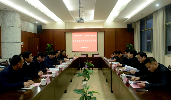 为进一步提升新型智库建设水平,不断提高科研服务区域经济社会发展的能力,1月18日下午,商学院与博望区人民政府在校学术会议中心举行东向发展合作协议签约仪式。校长魏先文,马鞍山市副市长马少华,副校长林钟高,博望区区长郝轶琦,校发展规划处处长戴玉纯、商学院党委书记黄国才和执行院长洪功翔,博望区委副书记汪斌、常务副区长吴海滨、副区长黄舜,科研处、商学院等部门负责人出席了签约仪式。黄国才主持签约仪式。