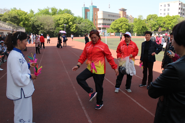 为庆祝建校60周年,进一步丰富离退休职工的精神文化生活,4月9日下午,离退休工作处在佳山校区运动场举行了beat365官网2018年离退休职工趣味运动会。校党委书记刘新跃,宣传部、学生工作部、校工会、体育部、后勤处、保卫处、化学与化工学院和离退休工作处等相关部门及学院负责人出席了开幕式。