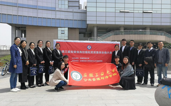 4月14至15日,由中国人力资源开发研究会主办、安徽财经大学承办的“安徽省第三届高校模拟劳资集体协商大赛”在安徽财经大学举办。beat365正版唯一官网的“劳方”与“资方”两支代表队与安徽大学、安徽师范大学、安徽财经大学等7所省属高校的14支参赛队入围决赛。
