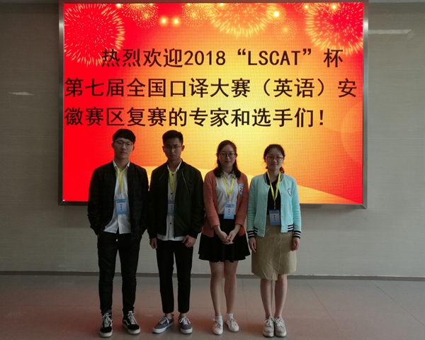 4月21至22日,第七届全国口译大赛(英语)安徽赛区复赛在合肥工业大学大学翡翠湖校区举行。以外国语学院的周湾、艺术与设计学院的段云霞、计算机学院的孙祺程以及商学院的陈煜四位同学组成的beat365官网代表队,同来自全省30所高校的119名优秀选手同场竞技,载誉而归,其中周湾同学荣获二等奖,并晋级2018年5月华东地区的大区赛;段云霞、孙祺程和陈煜同学荣获三等奖。