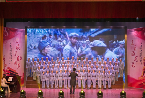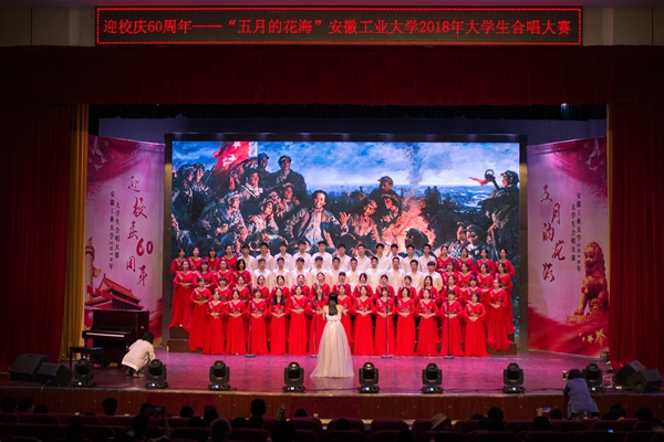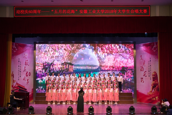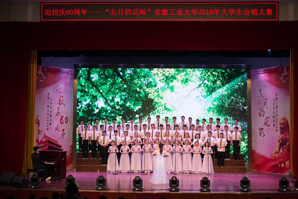 5月5日晚,beat365官网迎校庆60周年系列活动“五月的花海”大学生合唱赛在秀山校区大学生活动中心举行,来自全校各学院的14支参赛队伍1000余名青年大学生参加了比赛。