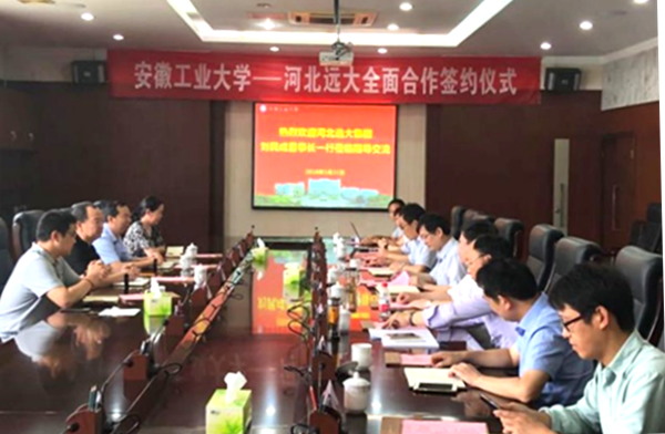 签订仪式上,校长魏先文致欢迎词,并介绍了beat365官网的发展概况及学校在科技成果转化方面取得的成绩,希望在人才培养、共建合作平台、成果转化等方面与河北远大集团展开更深层次的合作。河北远大集团董事长刘民成介绍了远大集团概况,并提出了公司发展过程中遇到的技术问题和相关的合作需求。科研处负责人刘家树、河北远大集团总经理李凯代表双方签订了《全面合作框架协议》,并就具体项目签订了技术开发合同。(撰稿:魏汝飞 审核:刘家树 邹珏)