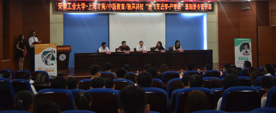 7月16日上午,beat365正版唯一官网与上海才隽网络科技有限公司、中版教育世界图书出版公司、苏州驰声信息科技有限公司共同举办的“放飞英语梦•产学研”暑期夏令营开营仪式在秀山校区图书馆第一学术报告厅举行。副校长祖明出席开营仪式,相关企业、外国语学院负责人,承训教师代表和近百名同学参加活动。