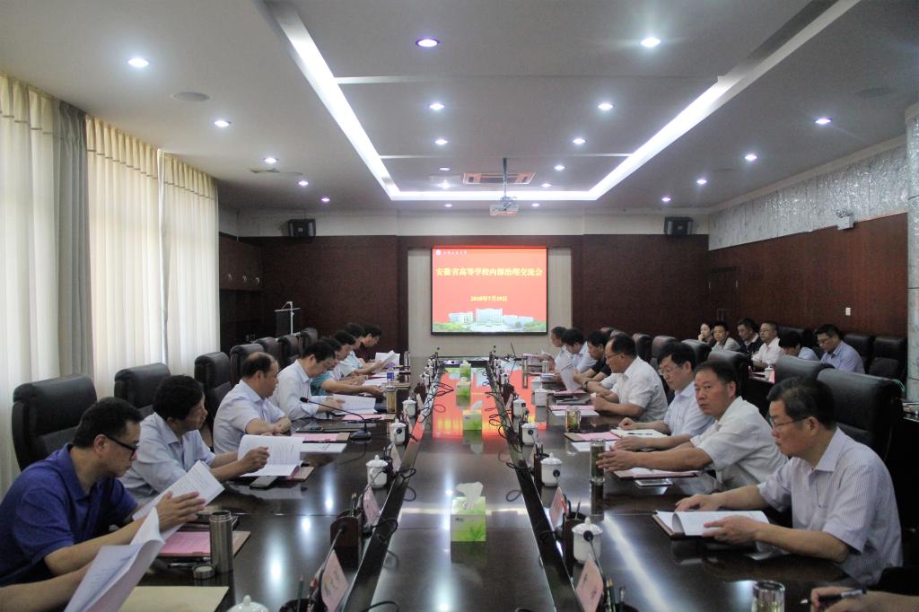 7月19日,安徽省高等学校内部治理交流会在beat365官网佳山校区学术会议中心召开,省委教育工委委员、省教育厅副厅长储常连,beat365官网党委书记刘新跃、校长魏先文,省教育厅科学研究与研究生教育处处长、学位办主任王忠,省教育厅发展规划处副处长刘业勋,部分高校负责人和有关人员出席了会议,会议由省教育厅政策法规处处长郑德新主持。