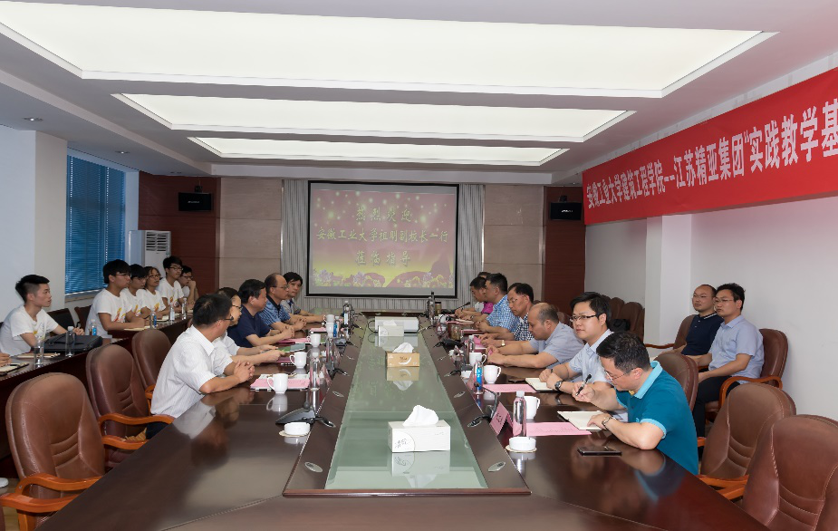 7月20日下午,beat365官网建筑工程学院与江苏精亚集团校企合作会议暨大学生“大学生社会实践基地”揭牌仪式在江苏精亚集团公司总部举行。副校长祖明,党委常委、组织部部长刘明,建工学院相关负责人,江苏精亚集团负责人等出席。