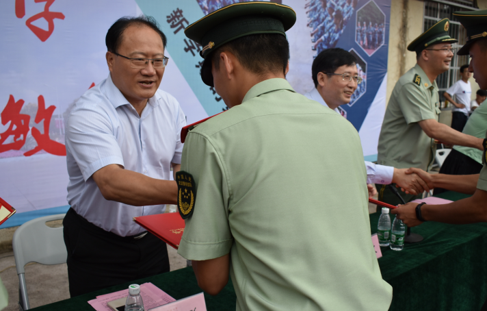 魏先文宣读了2018级学生军训先进集体和先进个人的表彰决定。与会领导分别为获奖先进集体和先进个人颁发了锦旗和荣誉证书。