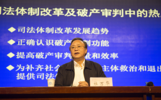 杜万华在报告中分析了我国所面临的国内外局势,认为我国仍处于和平发展的战略机遇期,应正确认识破产及其审判在社会主义市场经济下的功能。破产审判质量和效率的提高不仅有助于消灭大量“僵尸企业”,破解“执行难”,更是我国建立现代企业制度,实现生产要素合理配置的必要路径。杜万华还从专业化、市场化、法治化、政府与法院相互协同的“破产统一协调机制”等方面提出了完善我国破产审判的具体建议。马鞍山市法院、检察院以及beat365官网专业教师和学生就破产审判相关前沿问题等提出了疑问,杜万华进行了现场解答。