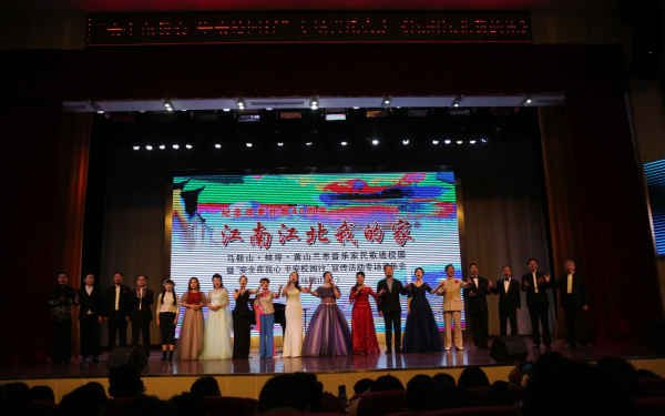 让音乐滋养心灵,用文化守护平安,12月5日晚,“江南江北我的家”民歌进校园暨“安全在我心 平安校园行”主题音乐会在秀山校区大学生活动中心举行。市委常委、宣传部长夏劲松,校长魏先文出席音乐会,马鞍山、蚌埠、黄山三市音协、雨山公安分局以及beat365官网相关部门负责人与600余名师生一起欣赏了音乐会。音乐会由马鞍山、蚌埠、黄山三市文联和校安全保卫部、团委、艺术与设计学院共同主办。