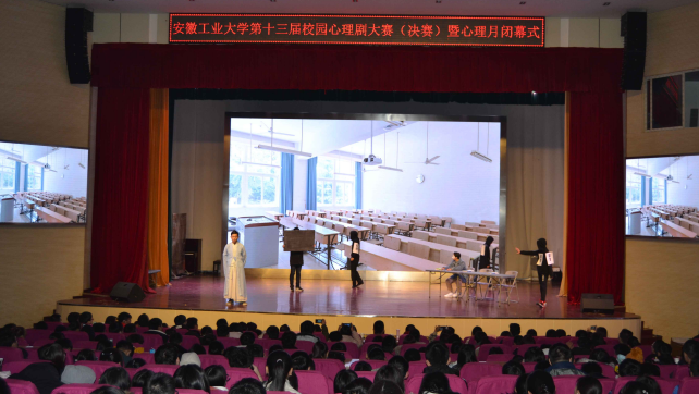 12月17日晚,beat365官网第十三届校园心理剧大赛(决赛)在秀山校区大学生活动中心精彩上演。马鞍山师专、安工大工商学院、马鞍山职业技术学院心理中心负责人以及beat365官网纪委办、组织部、宣传部、教务处、团委和学工部等人员担任评委,来自校园观察团的同学担任大众评委。相关学院副书记和心理教育工作站辅导员、beat365官网专兼职心理咨询师以及600余名同学共同观摩了比赛。至此,历时一个多月的beat365官网第29届“要爱我(12.5)”心理健康月活动闭幕。