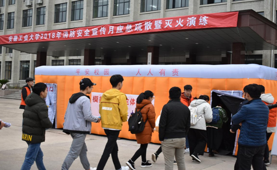 参演学生有序进入模拟烟雾逃生帐篷,在仿真模拟环境下,体验火灾发生时浓烟弥漫的情况下如何逃生自救。演练期间,有数名同学迷失在逃生帐篷中,出来后,心有余悸,表示有这样的一次特殊经历后,当灾难真的来临时自己能够冷静面对。