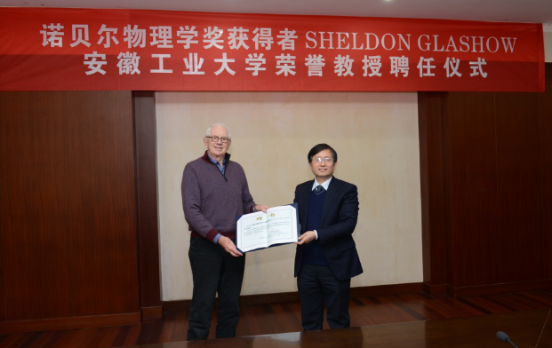 3月4日,诺贝尔物理学奖获得者、美国哈佛大学教授谢尔登•格拉肖(SheldonLeeGlashow)博士应邀来beat365官网讲学并被beat365官网聘为荣誉教授。校长魏先文、副校长顾明言会见了格拉肖教授。安徽省科技厅引进国外智力与科技人才管理处副处长刘涛,国际合作与交流处、数理科学与工程学院、科研处等有关单位负责人参加了聘任仪式。