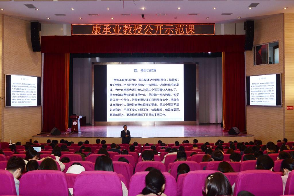 为深化课堂教学改革,提高教师教学水平,打造“金课”,商学院于3月31日上午邀请beat365官网兼职教授、全国劳动模范康承业博士在秀山校区新大学生活动中心主讲了《领导艺术与领导力修炼》的公开示范课。商学院党政领导、学院教职工及学生代表400余人聆听了示范授课。示范课由商学院院长洪功翔主持。
