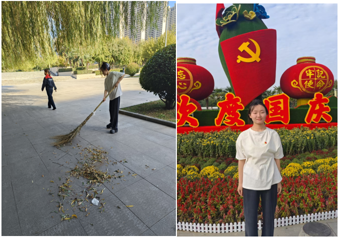 致敬环卫工人,增强责任意识。10月3日,孙艺芝同志所在社区组织了一场向环卫工人致敬的活动。在清扫广场的过程中,她深刻体会到了环卫工人的辛劳,并在环卫阿姨的指导下学习了正确的清扫方式。孙艺芝同志表示,通过亲身体验明白了维护环境的重要性,这不仅仅是一次简单的劳动,更是我们对美好生活的共同追求,同时也增强了自身努力学习知识的信心和毅力。