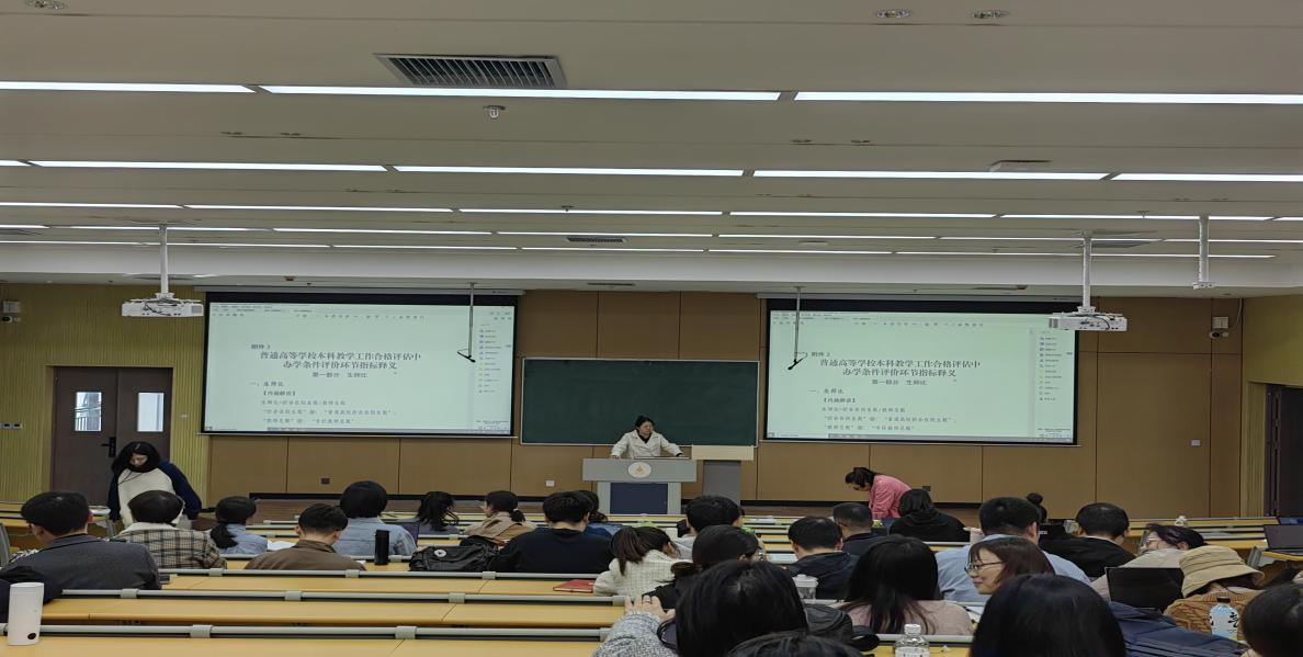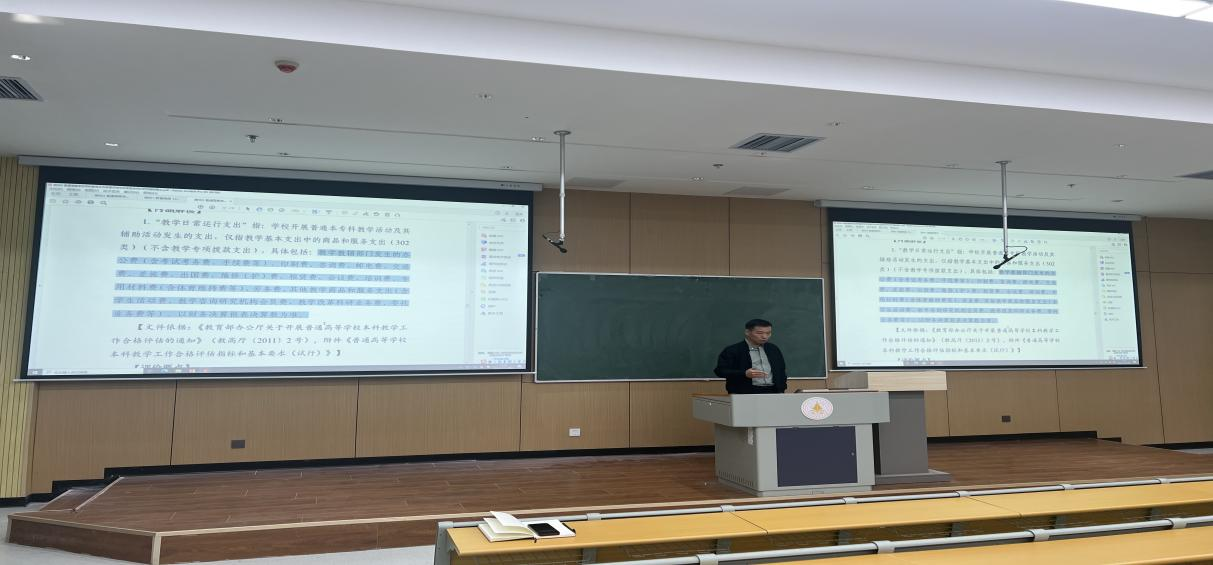 讲座结束后,王雅楠老师领学了《教育部教育督导局关于印发本科合格评估中办学条件评价环节指标体系及其释义和有关工作规程的通知(教督局函〔2024〕41号)》文件,对文件中内涵解读、评价要点和常见问题解读做了逐一学习。