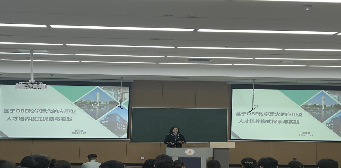 张俊丽副教授以“基于OBE教学理念的应用型人才培养模式探索与实践”为主题,从OBE“五项”毕业要求、培养目标、课程教学、考核评价、制度建设等五个方面进行了深入的阐述,重点阐述了OBE教育理念在人才培养方案制定过程中的应用。通过实际调研数据,结合国内外高校现状,详细解读了应用型人才培养模式的实施路径。提出了“一二课堂有效协同、产教融合、知识和技能融合、共性和特性融合”的应用型人才培养路径。
