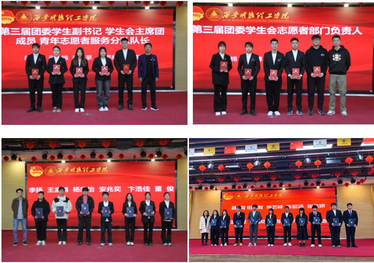 在热烈的掌声中,与会老师为学院第三届团委学生会干部和“百名学长领航计划”受聘学生颁发聘书。这一份聘书不仅是对他们过去努力的认可,更是对他们未来责任的赋予。