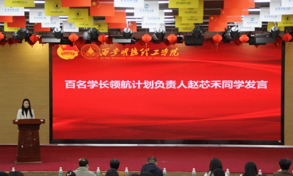 “百名学长领航计划”负责人赵芯禾同学发言。她表示,领航计划不仅是一个帮助学生提升自我、服务他人的平台,更是一个传承学院精神、引领学弟学妹前行的重要载体。