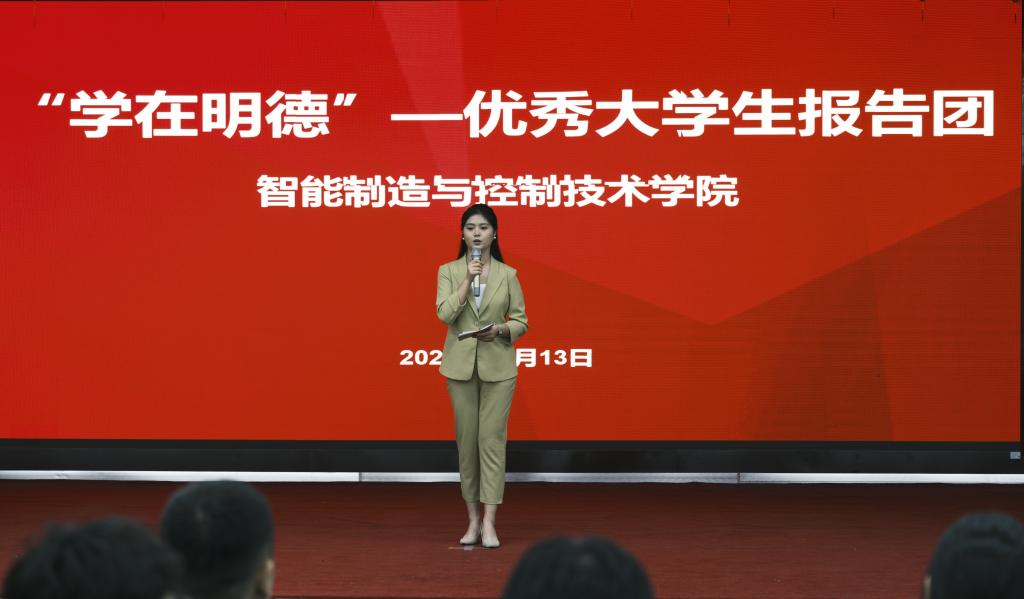 为进一步推动学院学风建设,展现青年学生个人风采、宣传身边的先进典型,充分发挥榜样引领和示范作用,以朋辈榜样效应激发学生内在学习动力,营造“学在明德”氛围,推动班风、学风、舍风建设,引领智控学子成长成才。11月13日晚,智能制造与控制技术学院在建德楼203报告厅举行2024年优秀大学生报告团宣讲会。学院党委副书记曾凯、团委书记刘玥琳、全体辅导员与300余名参加了此次宣讲会,会议由沣河校园广播站李丹主持。