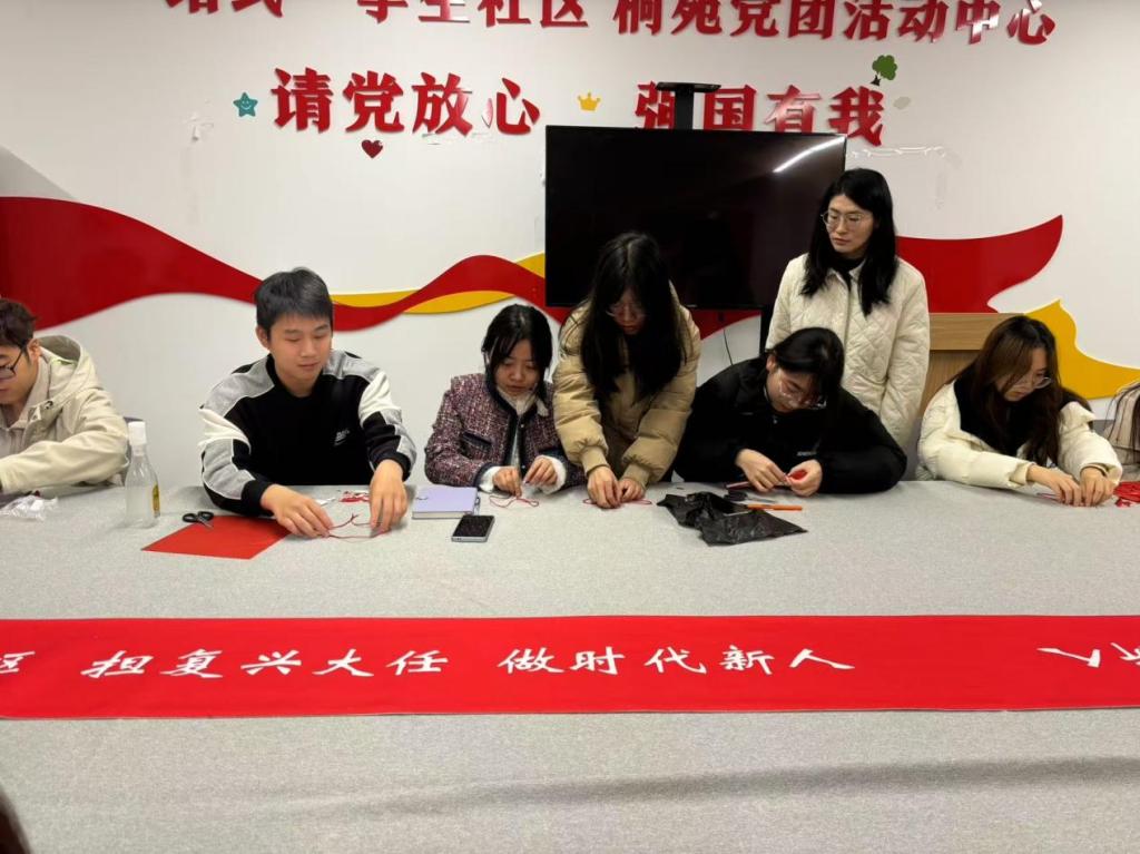 为加强和改进新时代学校美育工作,赓续文化血脉,将爱国主义教育与以美育人、以美化人、以美培元有机结合,在提升青年学生审美与人文素养的同时,厚植爱党、爱国、爱人民情怀。11月17日,经济与管理学院学生第四党支部在桐苑“一站式”学生社区开展强国复兴有我美育实践活动,支部党员、发展对象代表参加了活动。此次活动聚焦编中国结、剪纸、漆扇传统手工技艺,旨在引导学生们深入挖掘和传承中华民族优秀传统文化,为实现中华民族伟大复兴注入文化力量。