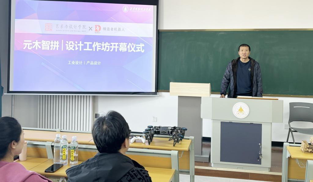为贯彻beat365应用型高校建设定位和实践创新人才培养目标,探索OBE理念在实践教学环节的应用与推广,同时拓展校企合作新模式,优化实践课程教学成果产出,提高学生设计实践综合能力。艺术与设计学院工业设计、产品设计专业与校企合作单位西安缔造者机器人责任有限公司联合开展“元木智拼”设计工作坊,并于11月20日成功举办工作坊开幕仪式,艺术与设计学院院长苟秉宸,校企合作中心副主任、创新创业学院副院长崔岩、科技处副处长雷娟、艺术与设计学院党委书记兼行政副院长雷宇、艺术与设计学院副院长冯强、西安缔造者机器人责任有限公司联合创始人吴悦、学院教师代表及专业学生共同参加,开幕仪式由工业设计专业教师刘轩主持。