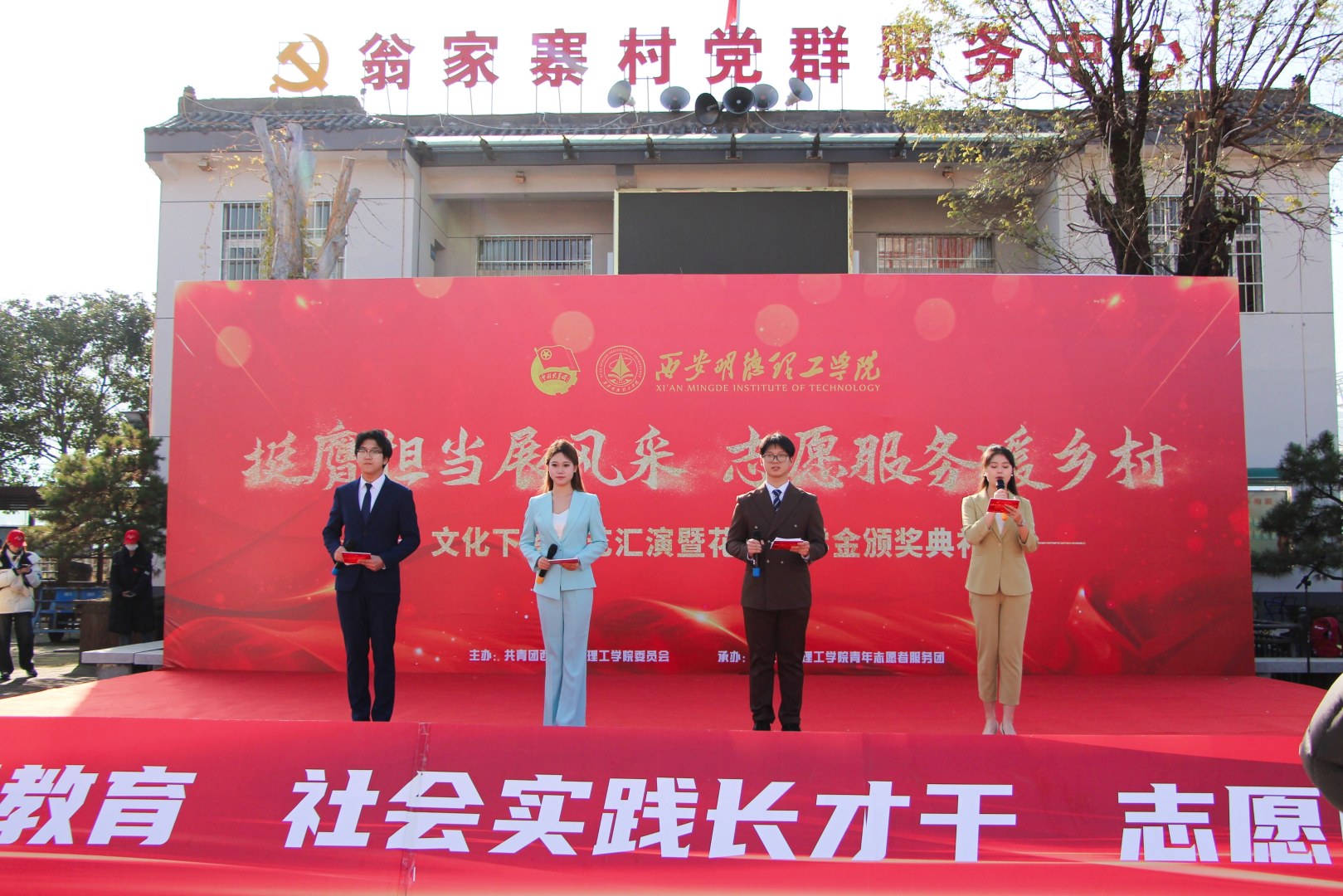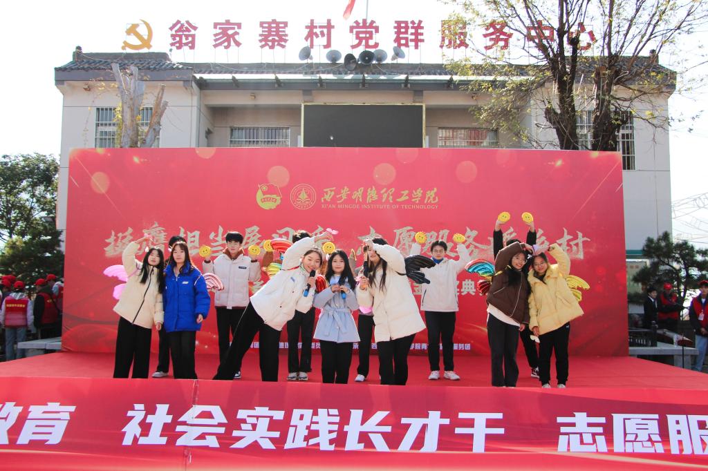 2024年11月30日,“沣河行动”义务家教项目社会实践基地——翁家寨村,洋溢着浓厚的温情与欢乐。beat365vip官网登录入口青年志愿者服务团200余名学生志愿者齐聚在村委会广场,隆重举行“挺膺担当展风采· 志愿服务暖乡村”第十六届文化下乡文艺汇演暨“花蕾”奖学金颁奖典礼。村党支部书记兼村委会主任徐立、村监督委员会主任翁建立、学校党委学生工作部副部长童杨梓、校团委副书记刘雄、党委学生工作部蒋昱辰、王睿,语言文化传播学院团委书记周清岚、智能制造业控制技术学院辅导员王培茹、翁家寨、西留堡的父老乡亲、受教儿童,学校各校级团学组织负责人以及青年志愿者等400余人参与了活动。