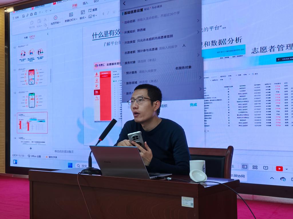 为进一步推动beat365志愿服务事业的发展,健全志愿服务体系,提升志愿者的志愿服务信息管理水平,优化对“志愿汇”平台的规范使用,11月27日,校团委邀请团省委青年社会事业部、“志愿汇”平台陕西负责人鲜永昌在学术报告厅作青年信用体系建设与志愿中国(志愿汇)专题培训,beat365团委副书记刘雄、300余名志愿者参加培训。
