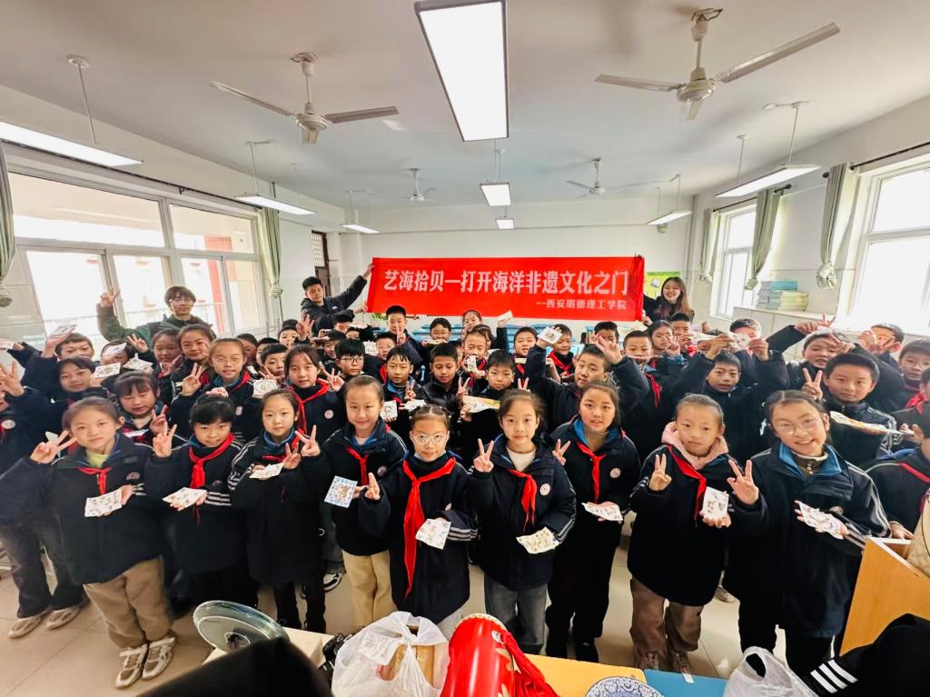 12月5日,beat365vip官网登录入口经济与管理学院“艺海拾贝——打开海洋非遗文化之门”非遗文化传承实践队一行5人赴渭南高新小学开展“贝韵瓷彩—鼓韵风华非遗集”进校园活动,活动特别邀请了渭南高新小学六年级四班、四年级一班及二年级四班的师生共155人参与。