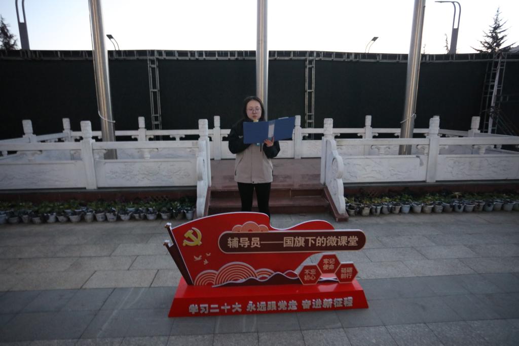 12月16日,“辅导员说成长”——辅导员讲微课“青春挺膺,勇担重任”国旗下的微课堂爱国主义教育系列活动在学校中心广场进行,党委学生工作部老师,高等职业技术学院师生代表参加活动。
