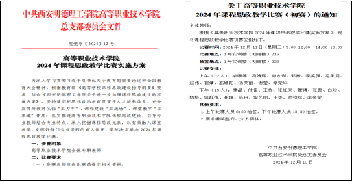 经过学院精心组织与策划,12月11日举行了课程思政教学比赛初赛,初赛在明理楼216会议室进行,比赛由电气自动化技术专业负责人尚亚锐教授、室内艺术设计专业负责人温静教授、学院党总支书记王庭良担任评委。
