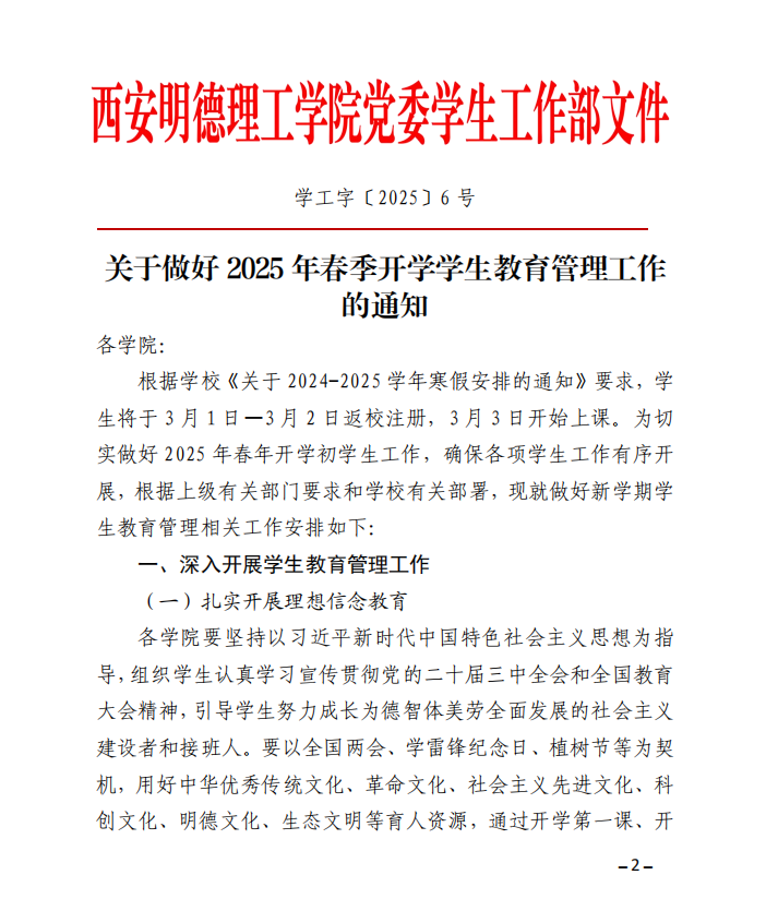 《关于做好2025年春季开学学生教育管理工作的通知》