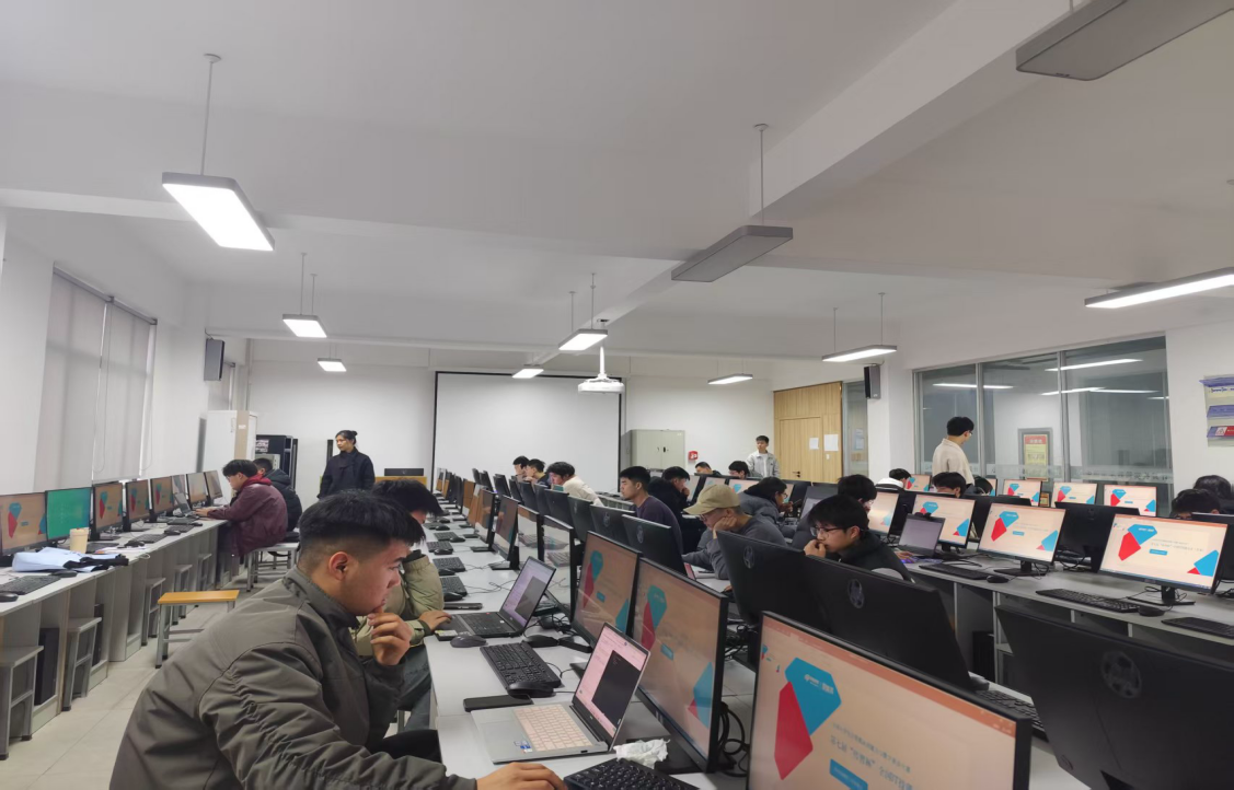 监考人员在赛场内认真巡视,严格维护考场秩序,学生志愿者们积极配合监考人员负责赛场服务和监督工作,确保比赛的公平、公正。与此同时,学院安排的专业技术支持人员时刻待命,对比赛过程中可能出现的技术问题进行及时处理,为比赛的顺利进行提供了坚实保障。