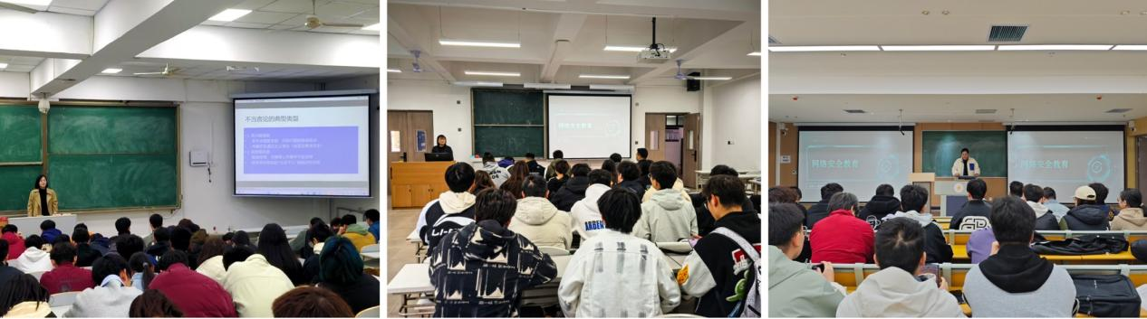 针对大一大二学生,辅导员们重点强调了网络文明的重要性,引导同学们树立正确的网络价值观。通过生动的案例分析,辅导员们向同学们展示了网络暴力、谣言传播等不文明行为的严重后果及形成的国家安全隐患,鼓励大家成为网络正能量的传播者。同时,辅导员们还就如何防范网络诈骗、保护个人隐私等网络安全知识进行了深入浅出的讲解,帮助同学们筑起坚实的网络安全防线。
