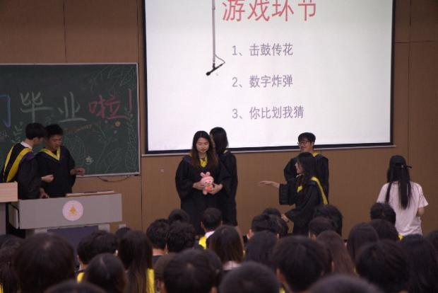 在轻松愉快的氛围中,毕业生们进入欢乐的游戏环节。两个趣味游戏让现场气氛瞬间达到高潮,同学们积极参与,欢声笑语不断,获胜的同学还收获了学院限定款惊喜小奖品。